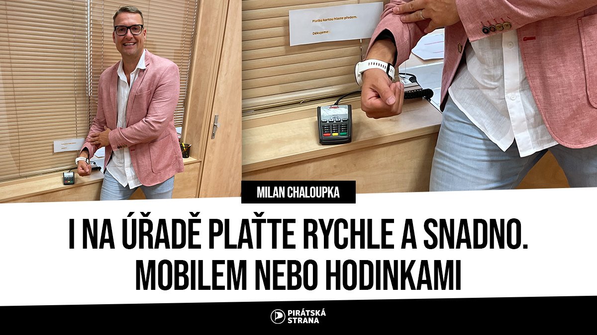 „Když se chce, tak to jde a na všech pokladnách na krajském úřadu v Plzni vám už stačí mít v ruce mobil nebo na ruce hodinky. A v nich platební kartu. Díky tomu rychle a snadno zaplatíte bez hotovosti a s tím spojených zdravotních rizik.“ říká Milan Chaloupka, předseda výboru pro Digitalizaci, IT a Otevřený kraj