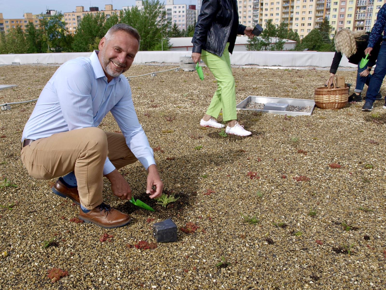 Pirát Pavel Bosák, 1. náměstek primátora Plzně, symbolicky zasadil několik zbývajících rostlinek na zelené střeše 4. základní školy v Plzni v Kralovické ulici. Pilotní projekt má ukázat cestu k ozelenění střech nejen u výrobních hal nebo škol, ale i u bytových domů včetně starší panelové výstavby.