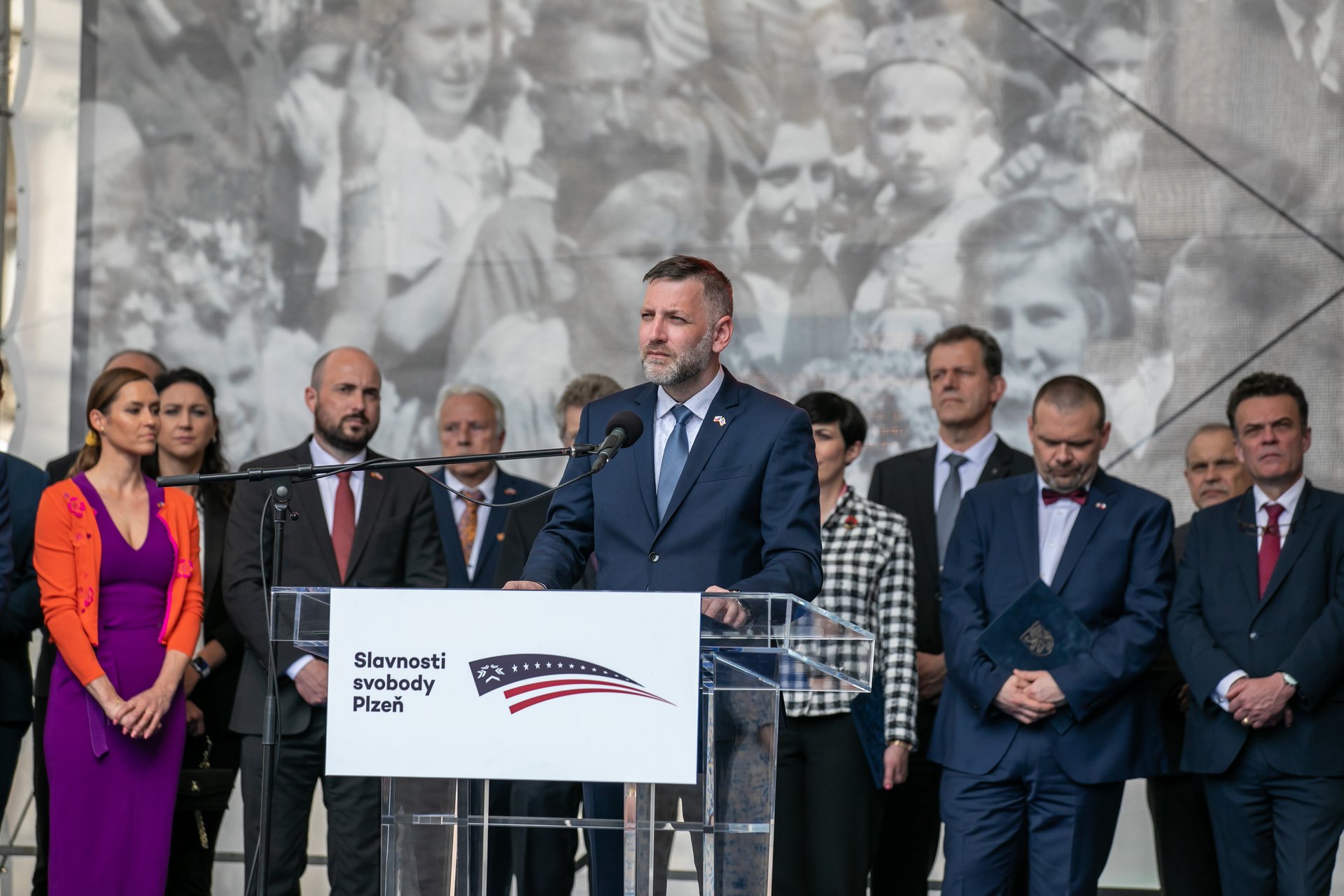 Na pódiu dále promluvili také primátor Plzně Roman Zarzycký, předseda Senátu Miloš Vystrčil, předsedkyně Poslanecké sněmovny Markéta Pekarová Adamová, ministr kultury Martin Baxa, velvyslanec Spojených států amerických v ČR Bijan Sabet a za veterány z Belgie přednesl zdravici Luc Rensonnet.