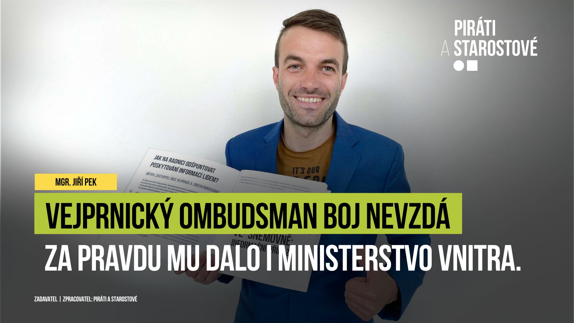 Ministerstvo vnitra ČR ukázalo vedení obce Vejprnice vztyčený ukazováček. Opoziční zastupitel Jiří Pek (Piráti) spolu s dalšími v obci dlouhodobě usilují o zlepšení tristního stavu poskytování informací občanům. Jelikož vedení obce ovládá všechny oficiální informační kanály, nemá opozice ani nespokojení občané prakticky možnost prezentovat své názory. O tom, že to ve Vejprnicích z hlediska komunikace a poskytování informací není zcela v pořádku, vypovídají i výsledky kontroly Ministerstva vnitra. Ta v protokolu z ledna tohoto roku uvádí hned několik porušení zákona.